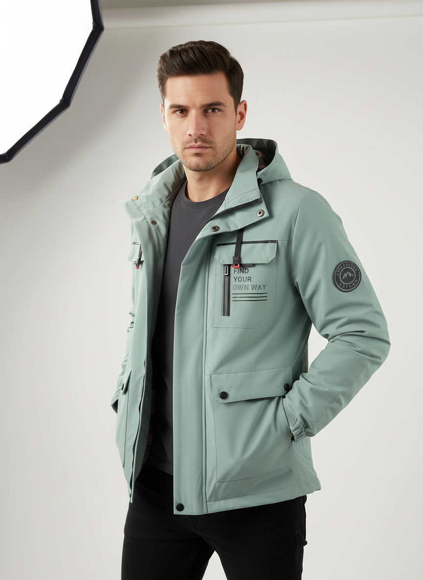Opdag den ultimative følgesvend til dine udendørs eventyr med vores funktionelle outdoorjakke. Designet med en moderne, utilitaristisk æstetik og fremstillet i en slidstærk polyesterblanding, tilbyder denne jakke en perfekt balance mellem stil og praktisk anvendelighed.
