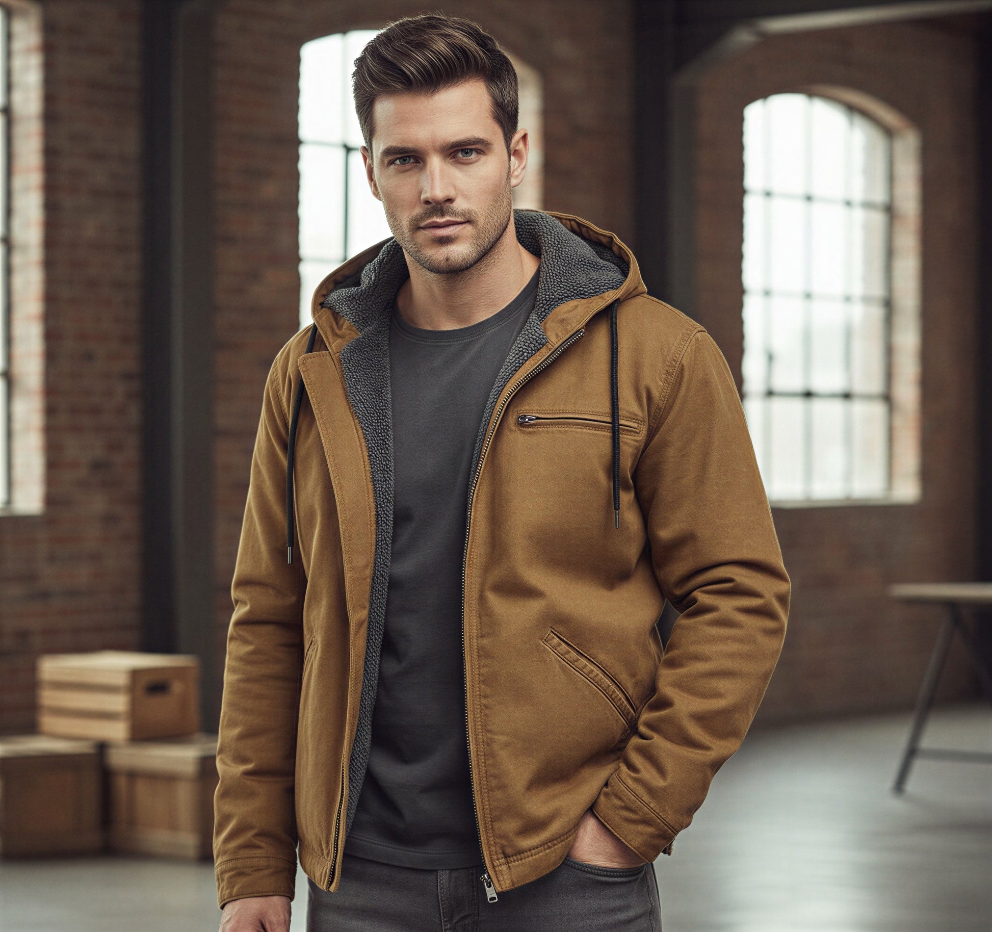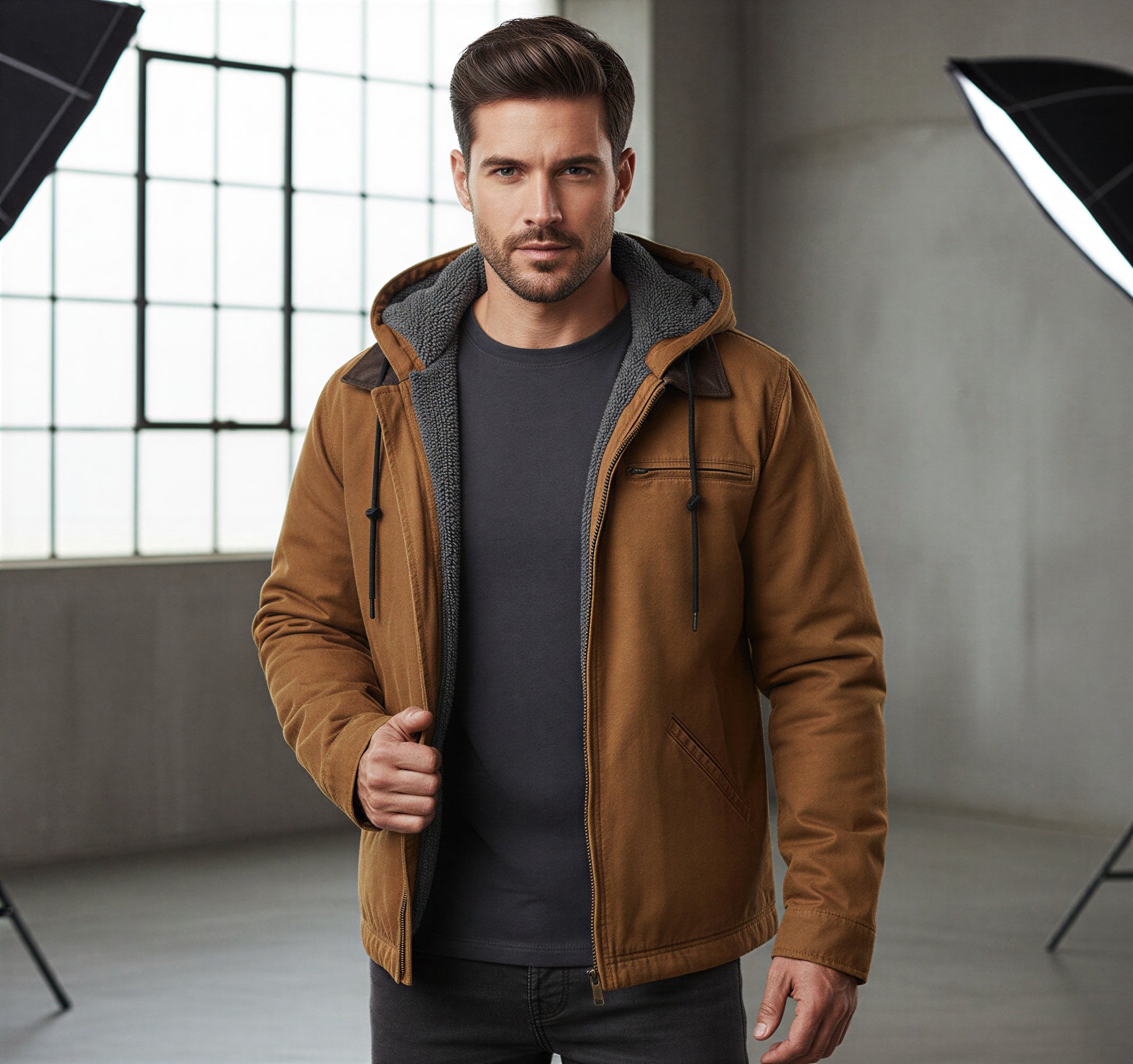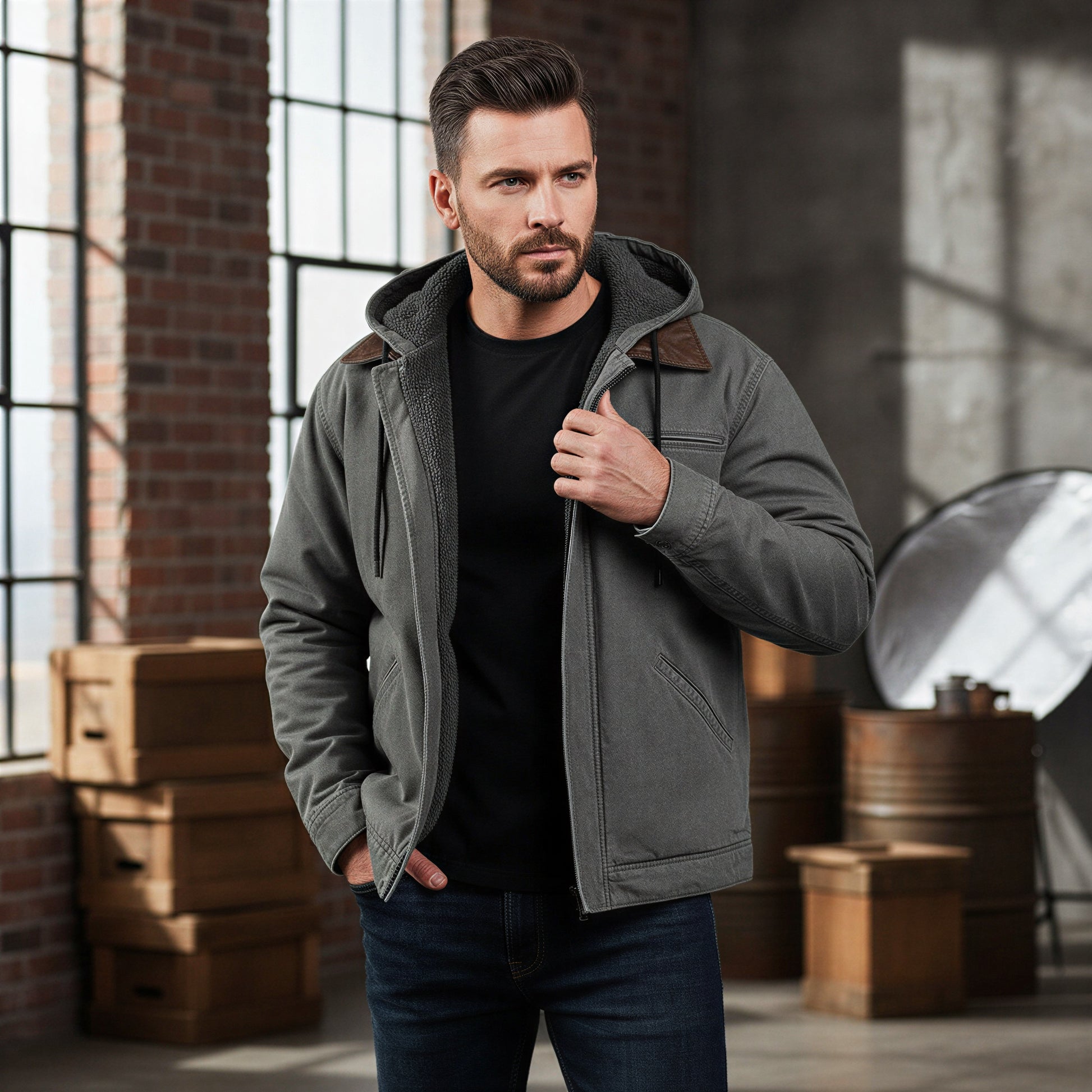 Herre Hættejakke | Varm Fleeceforing | Casual Hverdag