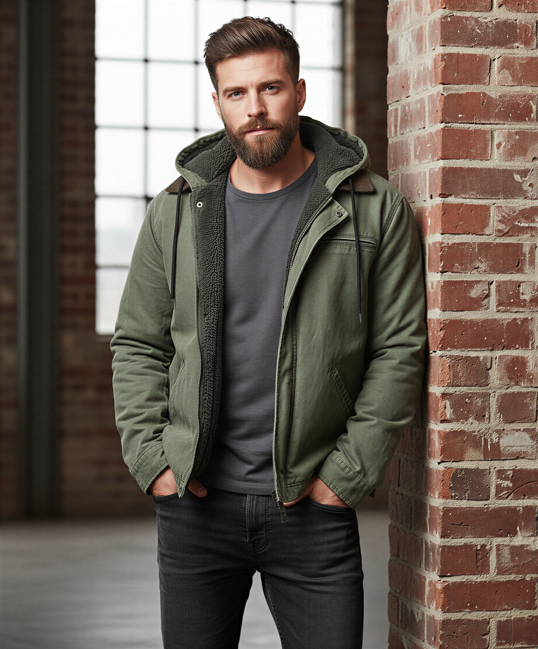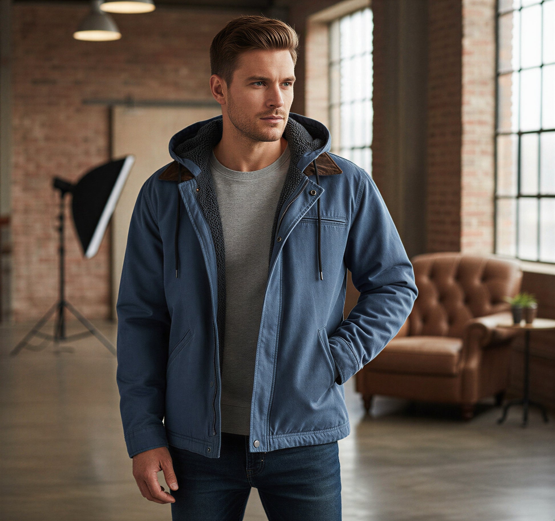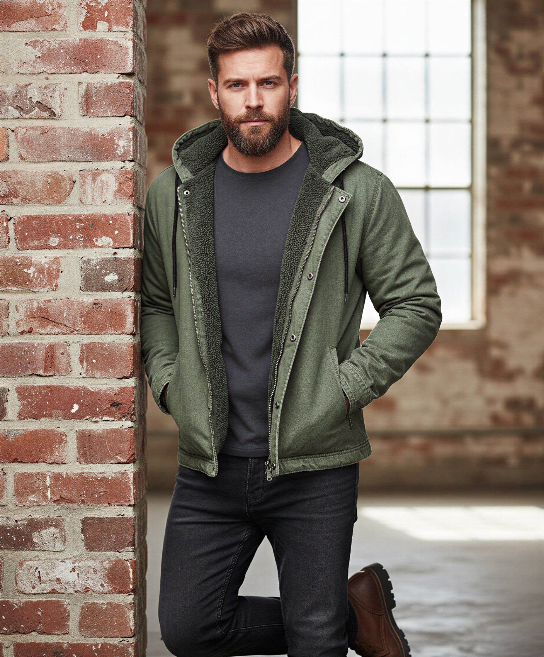 Herre Hættejakke | Varm Fleeceforing | Casual Hverdag
