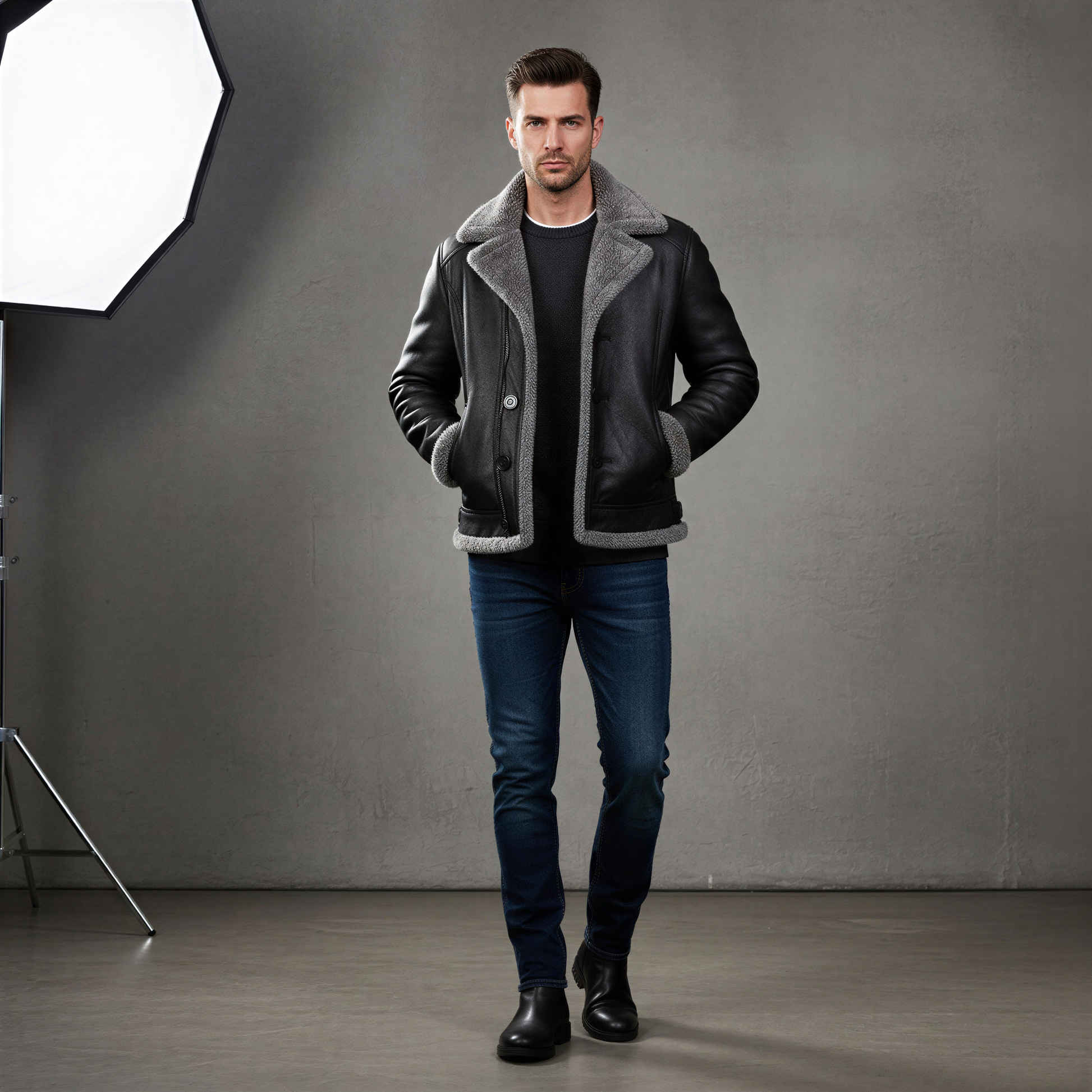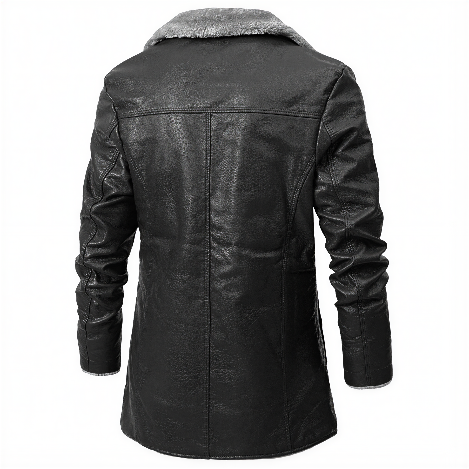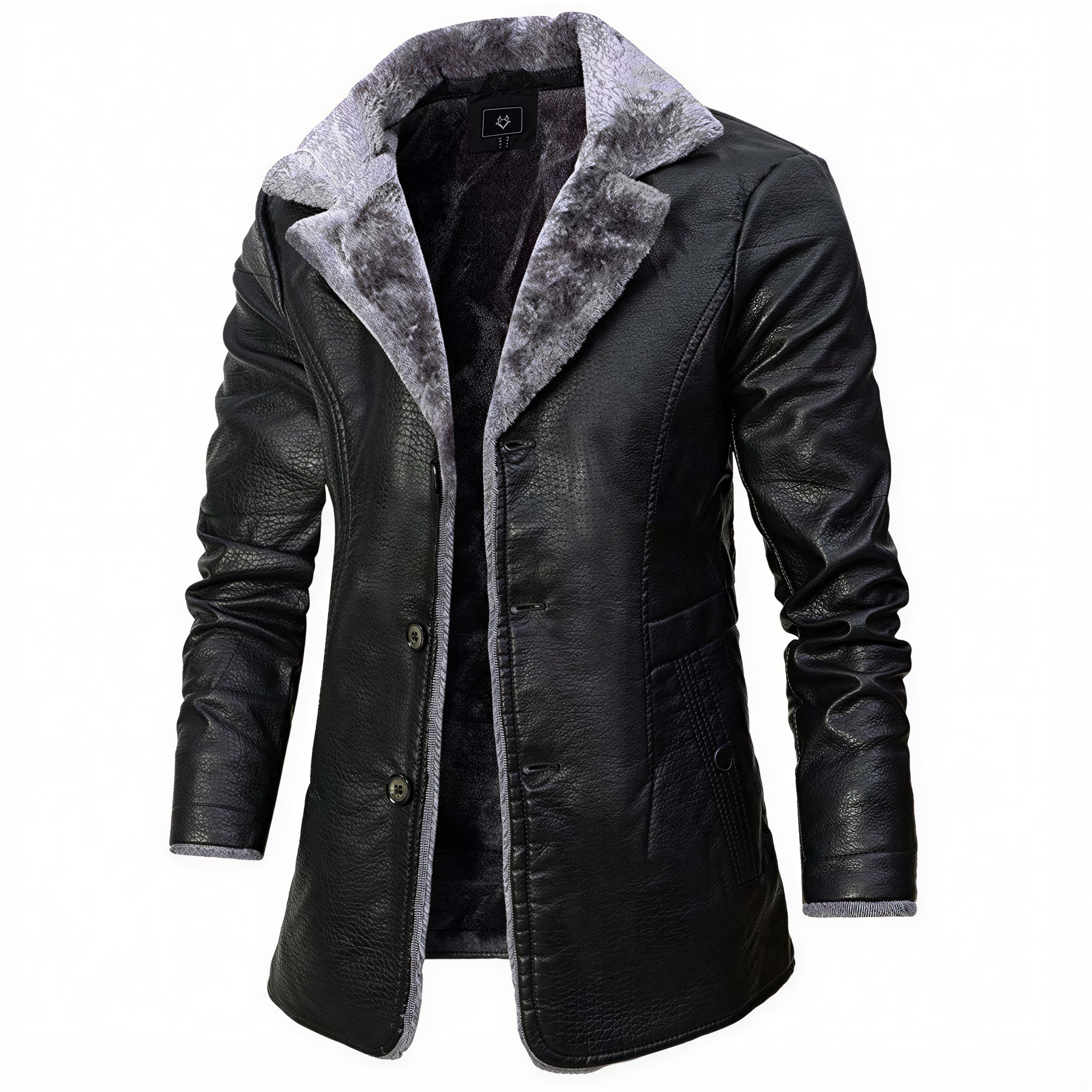 Klassisk Herre Trenchcoat | Imiteret Læder med Pels | Vintermode