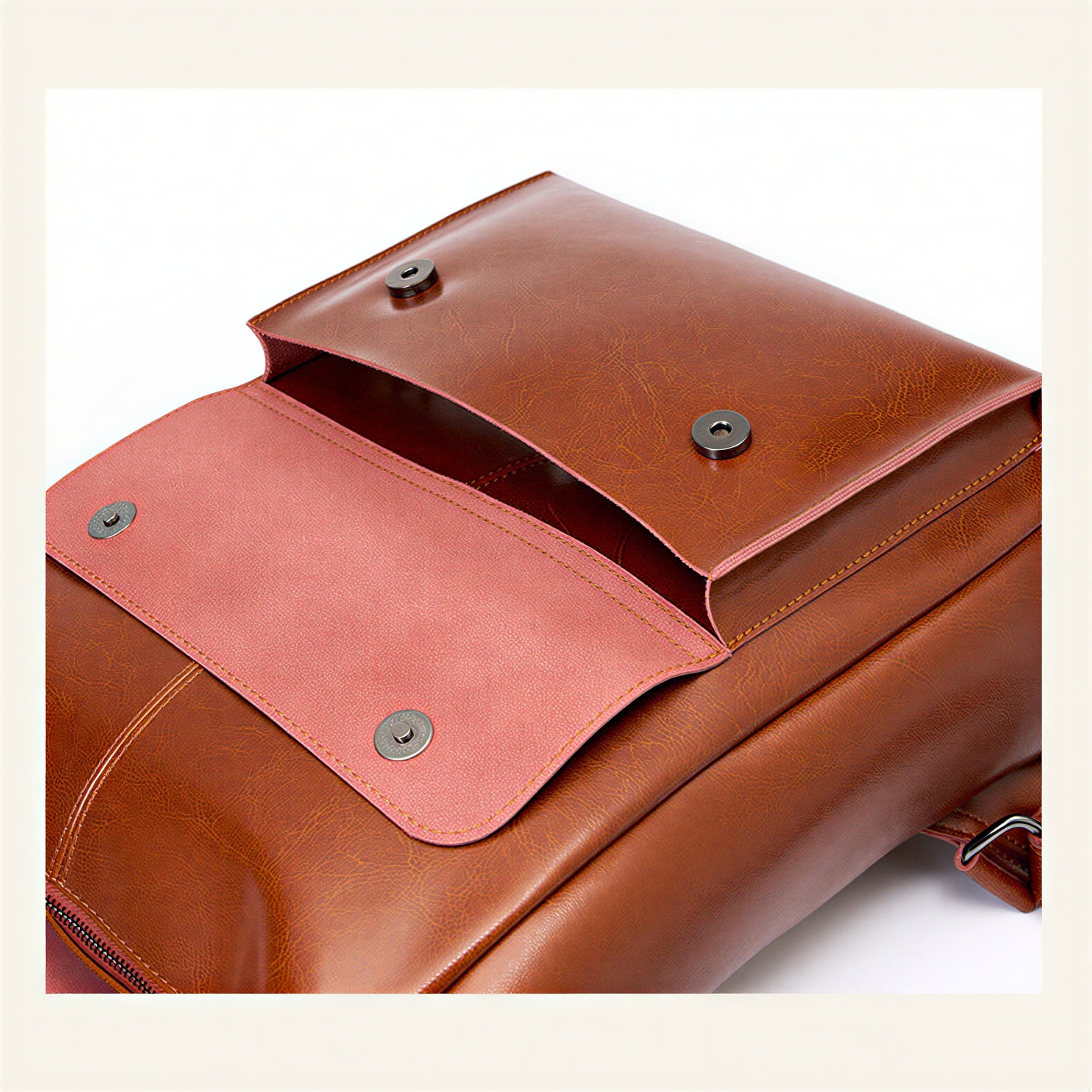 Oplev den perfekte kombination af stil og funktionalitet med vores klassiske rygsæk. Fremstillet af førsteklasses, glat kunstlæder, tilbyder denne rygsæk et sofistikeret udseende, der passer til enhver lejlighed. Det strukturerede design med flap-over hovedrum, sikret med justerbare remme og magnetlukninger, holder dine ejendele trygge. Den praktiske frontlomme med lignende lukning giver nem adgang til dine mest nødvendige ting.