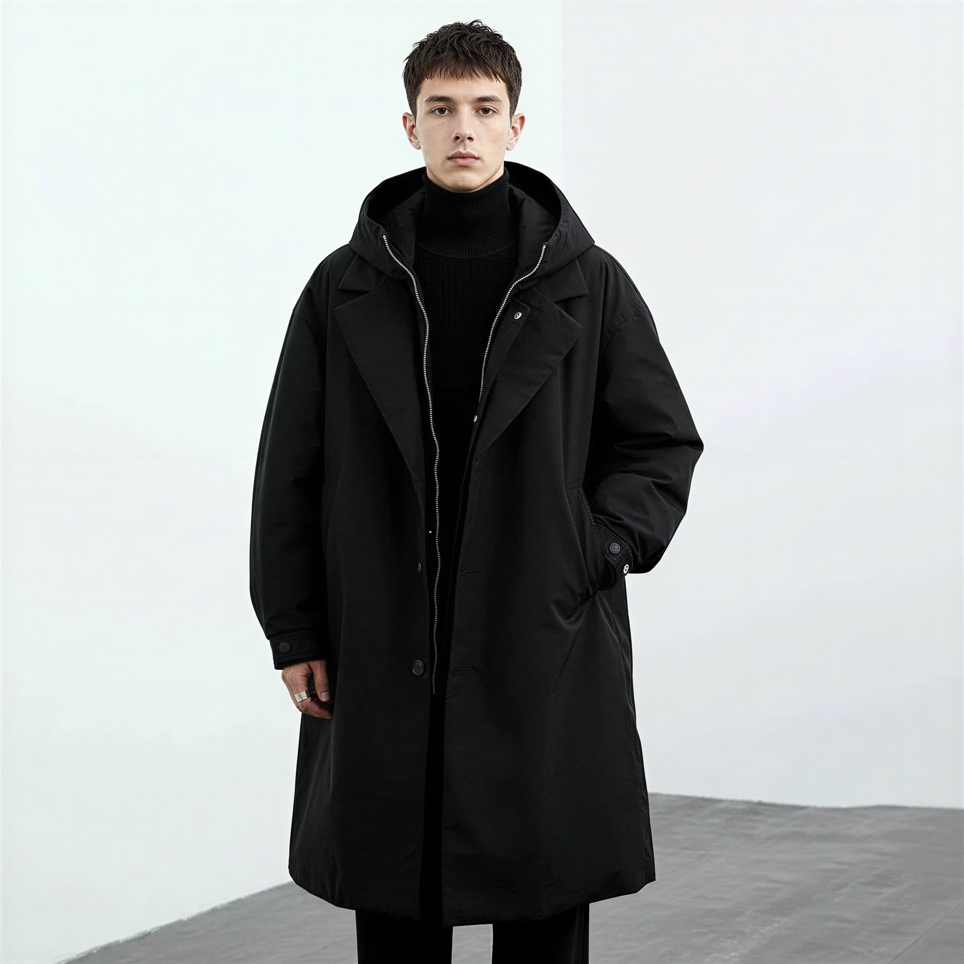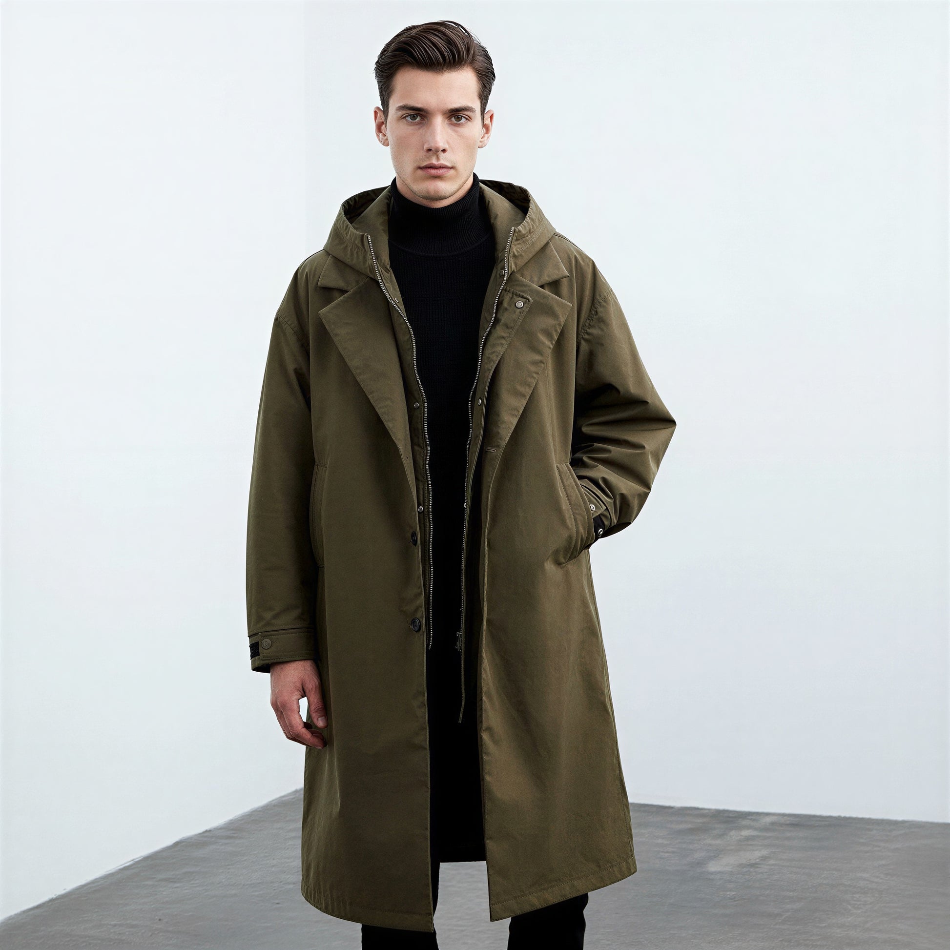 Opdag den perfekte kombination af stil og funktionalitet med vores moderne lange frakke. Designet til en afslappet pasform, tilbyder denne jakke en tidløs appel med en klassisk reverskrave og en praktisk lynlås- og knaplukning. Den aftagelige hætte tilføjer et ekstra lag af alsidighed, så du kan tilpasse dig vejret. Fremstillet af en holdbar polyesterblanding, er denne frakke ideel til hverdagsbrug og sikrer, at du forbliver komfortabel og stilfuld.