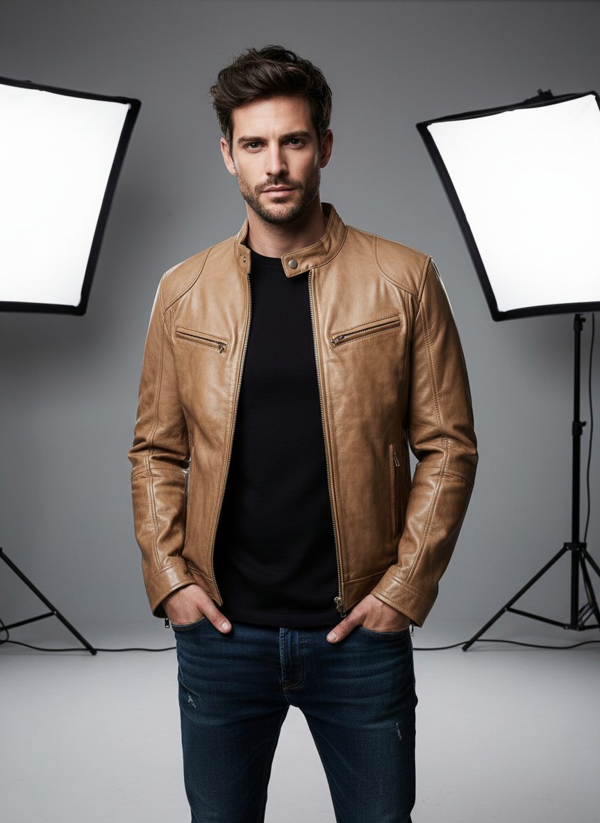 Moderne Kunstlæder Jakke | Lynlås & Lommer | Helårsbeklædning