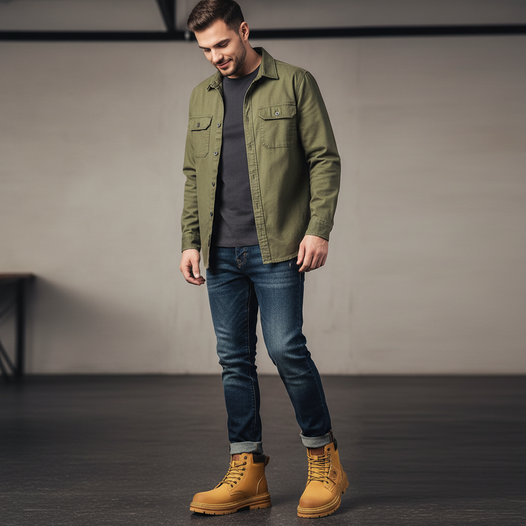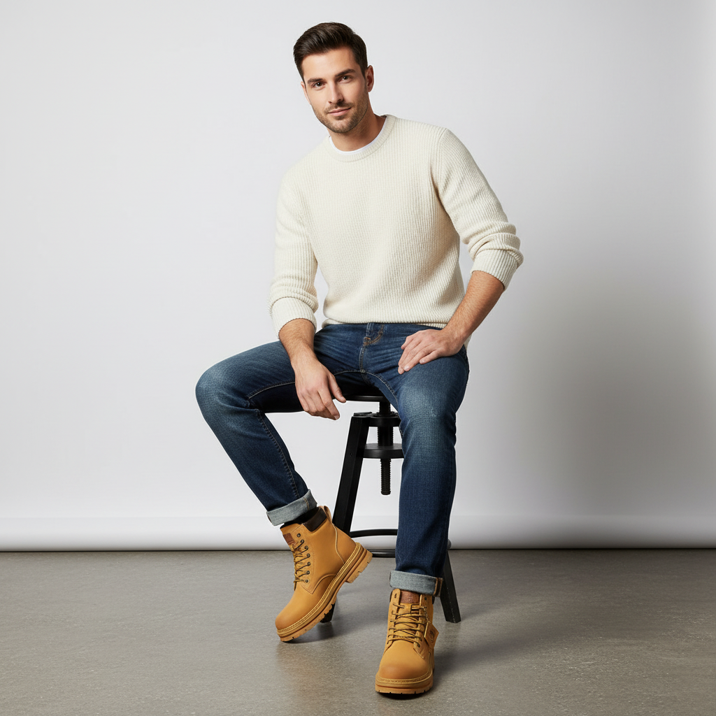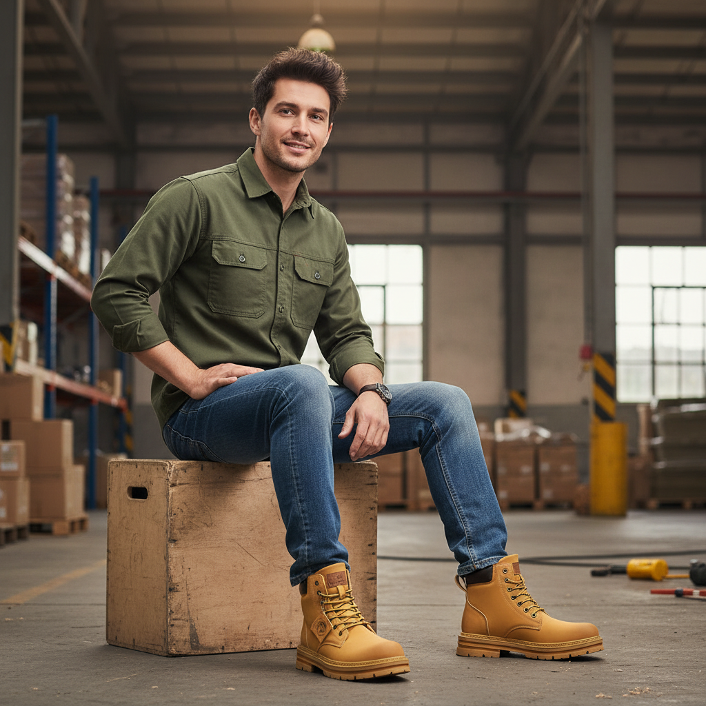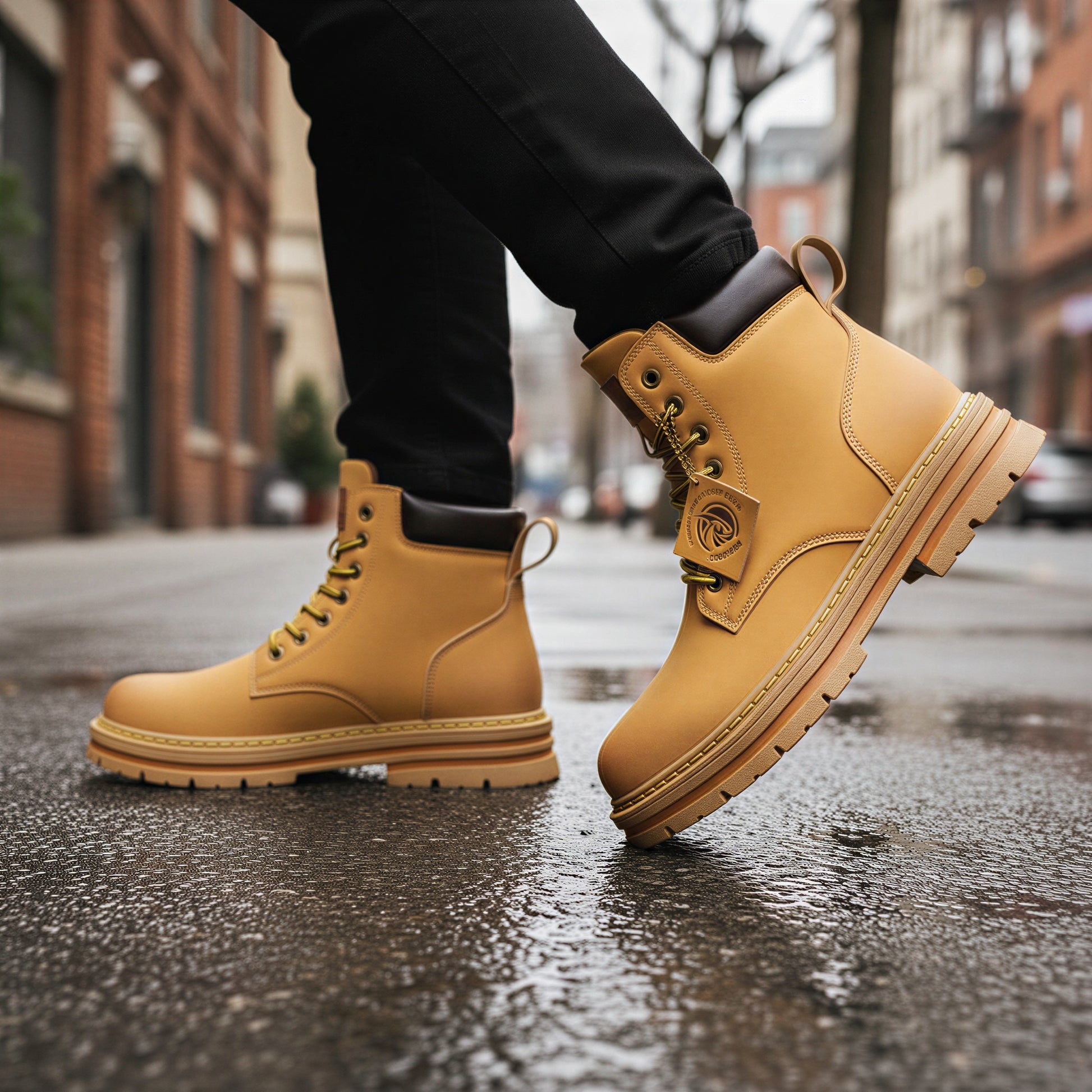 Oplev uovertruffen holdbarhed og stil med vores læderarbejdsstøvler, skabt til at modstå de hårdeste betingelser. Med deres mid-calf højde, snørelukning og kraftige sål med dybt mønster, sikrer disse støvler et solidt greb og maksimal komfort hele dagen.