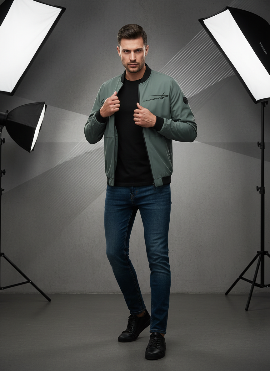 Opdag den ultimative kombination af stil og komfort med vores moderne bomberjakke. Designet til den modebevidste mand, der værdsætter et rent, urbant udtryk. Jakken har en klassisk pasform med ribstrikkede manchetter, kraven og linningen, der sikrer en god pasform og holder kulden ude.
